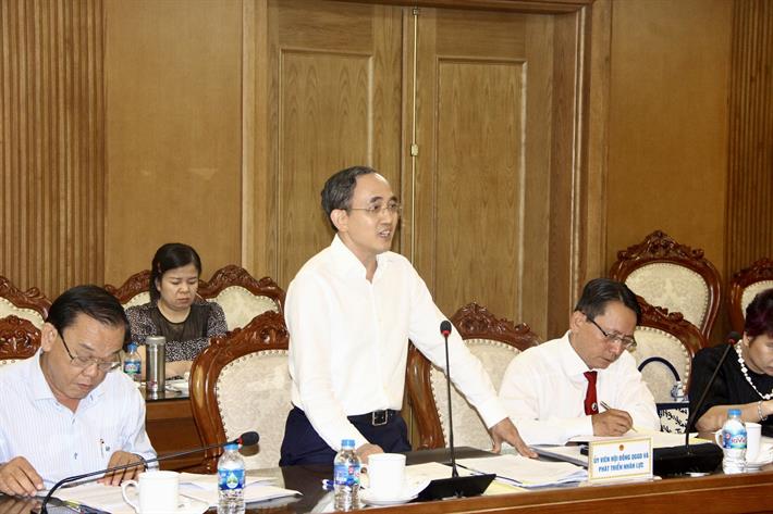 PGS.TS Huỳnh Quyết Thắng, Giám đốc Đại học Bách khoa Hà Nội trao đổi tại phiên họp