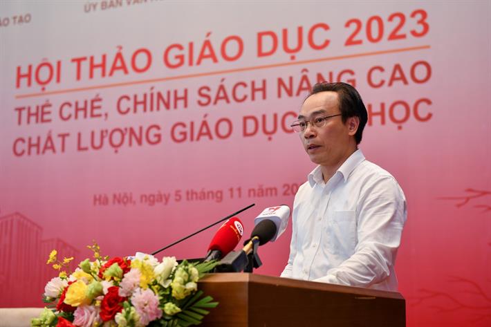 Phát biểu tại Hội thảo, Bộ trưởng Nguyễn Kim Sơn cho biết, từ năm 2022 đến nay, đã có khá nhiều hội nghị, diễn đàn được tổ chức nhằm tìm lời giải, hướng đi để phát triển hệ thống giáo dục đại học. Và Hội thảo hôm nay bàn về vấn đề thể chế chính sách để nâng cao chất lượng giáo dục đại hoc, cũng là khía cạnh góp phần vào việc phát triển giáo dục đại học.