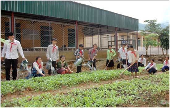 Hoạt động trồng rau của học sinh trường Phổ thông dân tộc bán trú