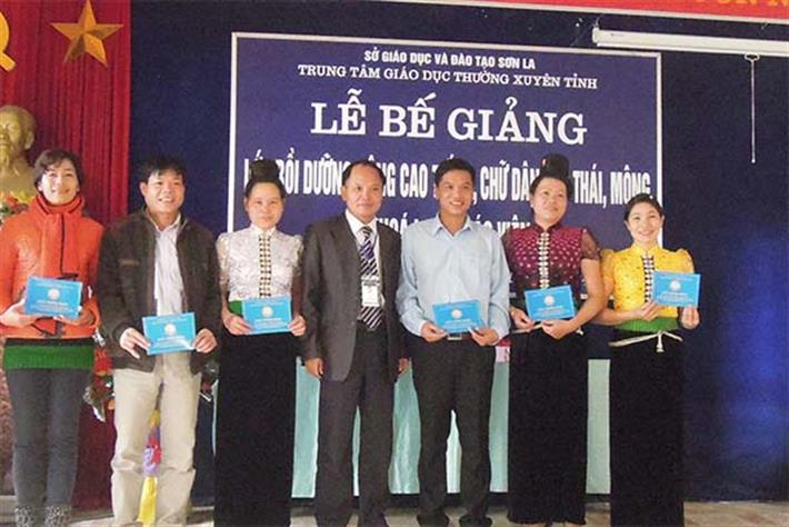 Nhận thức được tầm quan trọng của việc sử dụng ngôn ngữ đồng bào dân tộc thiểu số trong giao tiếp thông thường và trong thực thi nhiệm vụ, Từ năm 2010 Trung tâm GDTX tỉnh Sơn La đã biên soạn tài liệu và trực tiếp giảng dạy tiếng dân tộc Thái cho cán bộ công chức, viên chức đang công tác ở Sơn La.