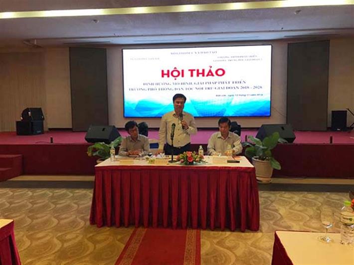 Tại Hội thảo, Vụ trưởng Vụ Giáo dục dân tộc Trần Ngọc Sơn đã báo cáo kết quả đạt được và những khó khăn, hạn chế trong giai đoạn 10 năm (2008-2018) củng cố và phát triển trường PTDTNT. Trong đó khẳng định vai trò to lớn, không thể thay thế của trường PTDTNT trong việc tạo nguồn đào tạo cán bộ, bồi dưỡng và phát triển nguồn nhân lực vùng DTTS, miền núi, vùng có điều kiện kinh tế - xã hội đặc biệt khó khăn, biên giới và hải đảo.