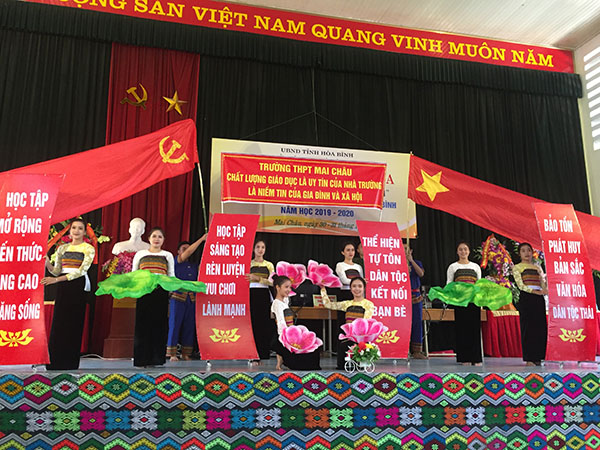 Trong 2 ngày 30-31/10/2019, Sở GD&ĐT tỉnh Hòa Bình đã tổ chức hoạt động ngoại khóa thi “Tìm hiểu bản sắc văn hóa dân tộc Thái” đối với học sinh THPT khu vực huyện Mai Châu năm học 2019 – 2020 tại trường Phổ thông DTNT THCS&THPT huyện Mai Châu. Tham gia hoạt động có 4 trường trên địa bàn huyện Mai Châu bao gồm THPT Mai Châu, THPT Mai Châu B, PTDTNT THCS&THPT Mai Châu và PTDTNT THCS&THPT B Mai Châu.