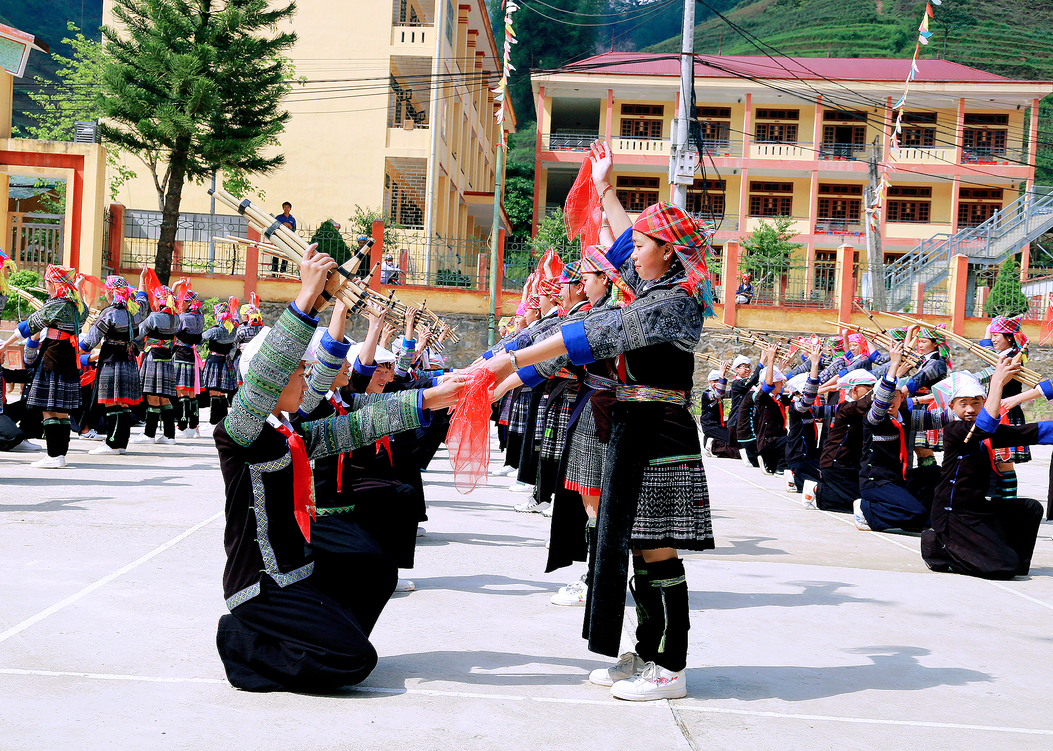 Học sinh Trường PTDTNT THCS Mù Cang Chải trong một hoạt động văn hóa văn nghệ