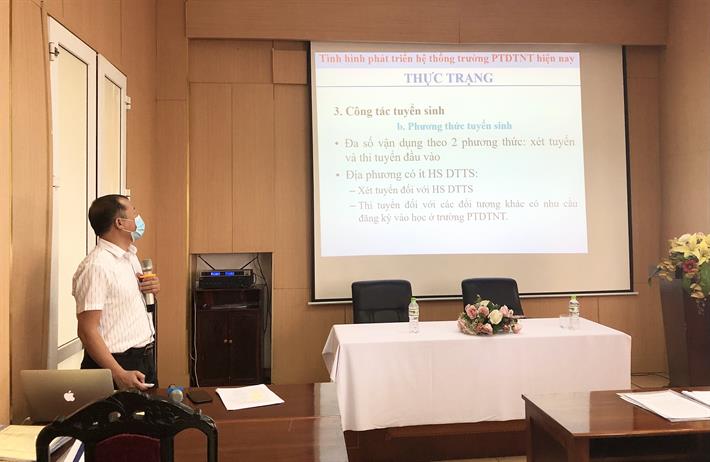 Đại diện Vụ Giáo dục Dân tộc báo cáo tình hình phát triển hệ thống trường PTDTNT, PTDTBT