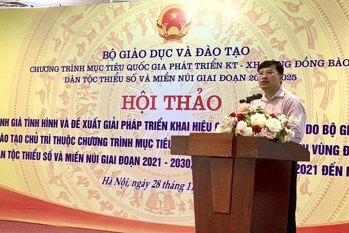 Tại Quyết định số 1719/QĐ-TTg của Thủ tướng Chính phủ Phê duyệt Chương trình mục tiêu quốc gia phát triển kinh tế - xã hội vùng đồng bào dân tộc thiểu số và miền núi giai đoạn 2021 - 2030, giai đoạn I từ 2021 - 2025, Bộ GDĐT được giao chủ trì 02 nhiệm vụ, bao gồm Tiểu dự án 2, Dự án 4 với nội dung đầu tư cơ sở vật chất cho các đơn vị sự nghiệp công lập hoạt động trong lĩnh vực công tác dân tộc và Tiểu dự án 2, Dự án 5 với nội dung đổi mới hoạt động, củng cố phát triển các trường phổ thông dân tộc nội trú, trường phổ thông dân tộc bán trú, trường phổ thông có học sinh bán trú và xóa mù chữ cho người dân vùng đồng bào dân tộc thiểu số.
