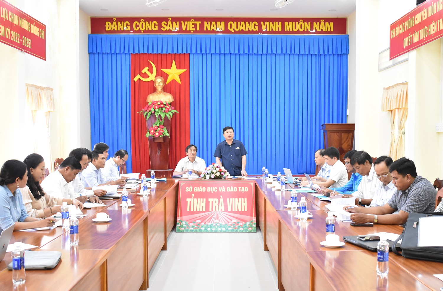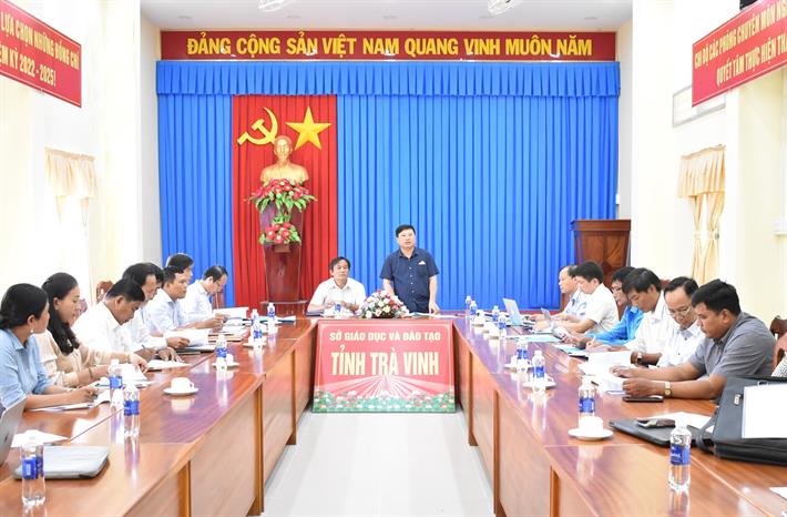 Phó Giám đốc Sở GDĐT tỉnh Trà Vinh Thạch Tha Lai báo cáo tại buổi làm việc