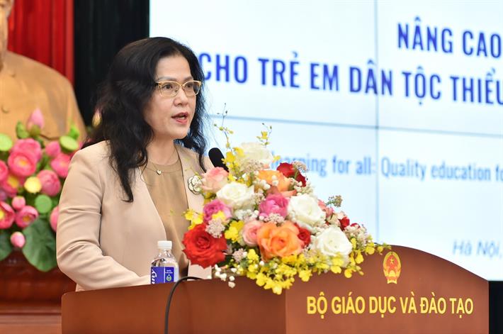 Phát biểu tại buổi lễ, Thứ trưởng Nguyễn Thị Kim Chi khẳng định, đây là sự kiện rất có ý nghĩ đối với giáo dục Việt Nam và đặc biệt là đổi với trẻ em ở vùng dân tộc thiểu số, trẻ em thiệt thòi. Thứ trưởng đồng thời bày tỏ vui mừng, lời cảm ơn trân trọng tới các đối tác tham gia dự án này.