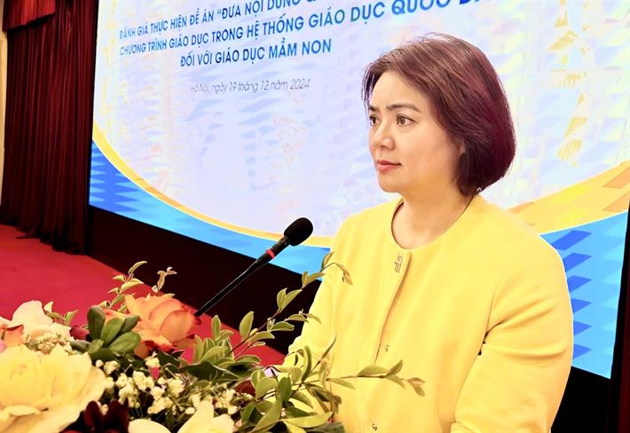 Phó Vụ trưởng Vụ Giáo dục Mầm non Cù Thị Thủy phát biểu tại hội thảo
