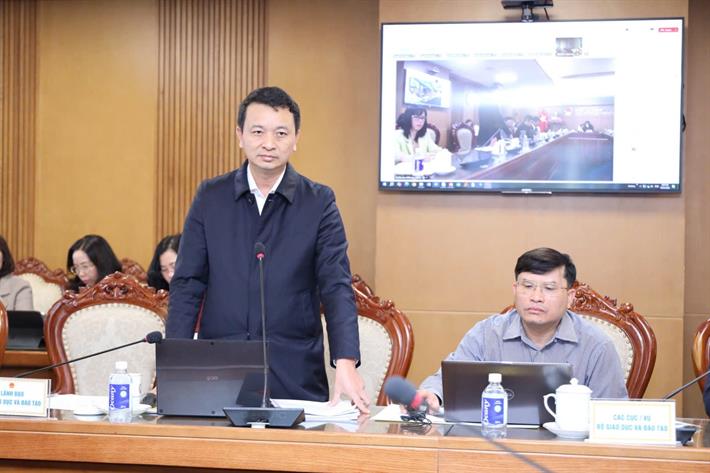 Phó Giám đốc Sở GDĐT tỉnh Quảng Trị Võ Văn Minh trao đổi tại phiên họp