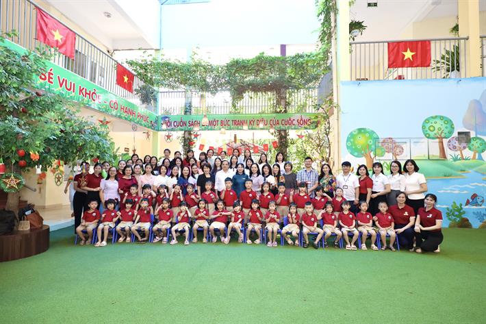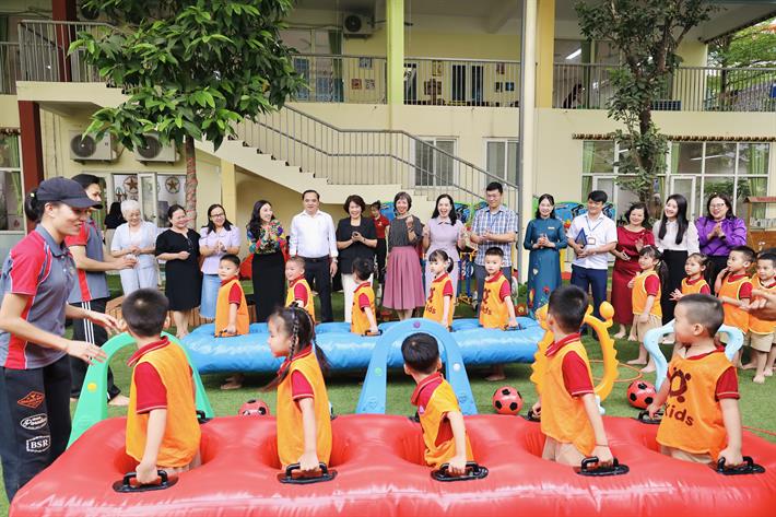 Trong khuôn khổ hội thảo, chiều 25/9, các đại biểu đã đi tham quan thực tế và trao đổi kinh nghiệm tại trường mầm non Kim Chung A, thôn Bầu, xã Thiên Lộc, TP Hà Nội.