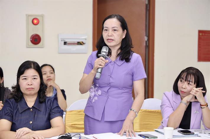 Bà Nguyễn Thị Hào, Phó Trưởng phòng Giáo dục mầm non, Sở GDĐT Hà Nội, trao đổi tại hội thảo