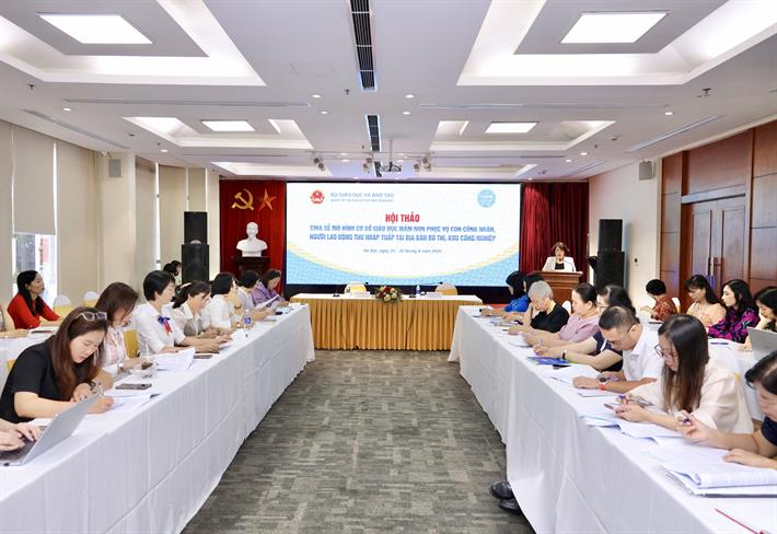 Tham dự hội thảo có đại diện các đơn vị thuộc Bộ GDĐT, Tổng Liên đoàn Lao động Việt Nam; các tổ chức quốc tế; đại diện Sở GDĐT, UBND xã, phường và các trường mầm non ở địa bàn đô thị, khu công nghiệp.