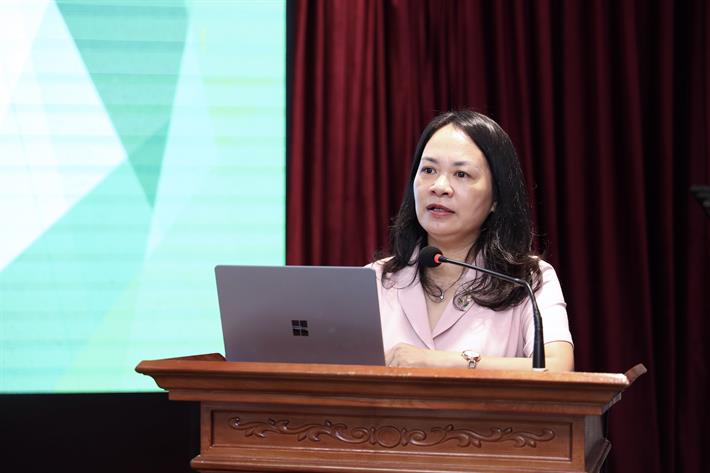 Phó Vụ trưởng Vụ Giáo dục mầm non Hoàng Thị Dinh phát biểu tại hội thảo