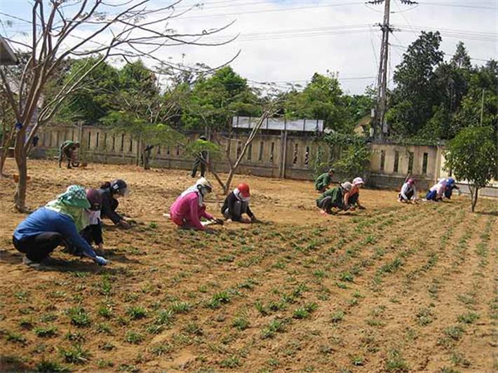 Công đoàn phối hợp với bộ đội C17 Công binh trồng cỏ xây dựng môi trường xanh
