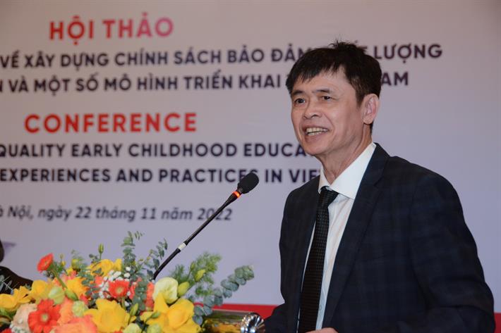 Đại diện lãnh đạo các đơn vị chuyên môn của Bộ GDĐT đã cung cấp bức tranh đa dạng và tổng thể về GDMN Việt Nam hiện nay. Vụ trưởng Vụ GDMN Nguyễn Bá Minh chia sẻ về chính sách phát triển GDMN và cho biết, định hướng sẽ chú trọng chính sách cho giáo viên mầm non, bao gồm tăng thu nhập, nâng cao năng lực nghề nghiệp, giảm giờ làm việc, hỗ trợ GDMN vùng khó khăn, hướng đến phổ cập GDMN trẻ em mẫu giáo vào năm 2030.