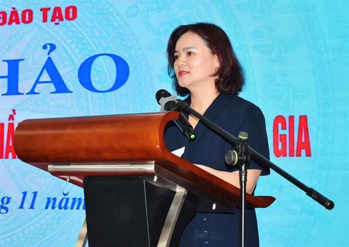Phó Vụ trưởng Vụ Giáo dục Mầm non Cù Thị Thủy phát biểu tại hội thảo