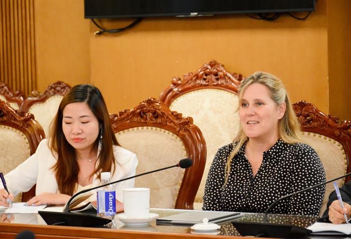 Thứ trưởng Nguyễn Thị Kim Chi, bà Morgan Hurley Lance và các thành viên hai bên tại buổi làm việc