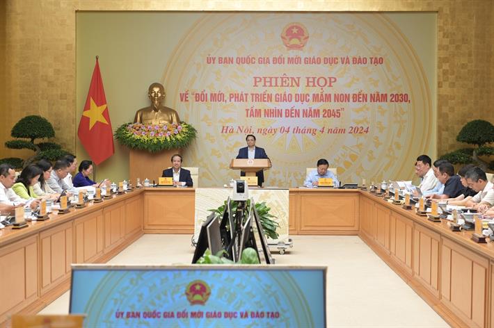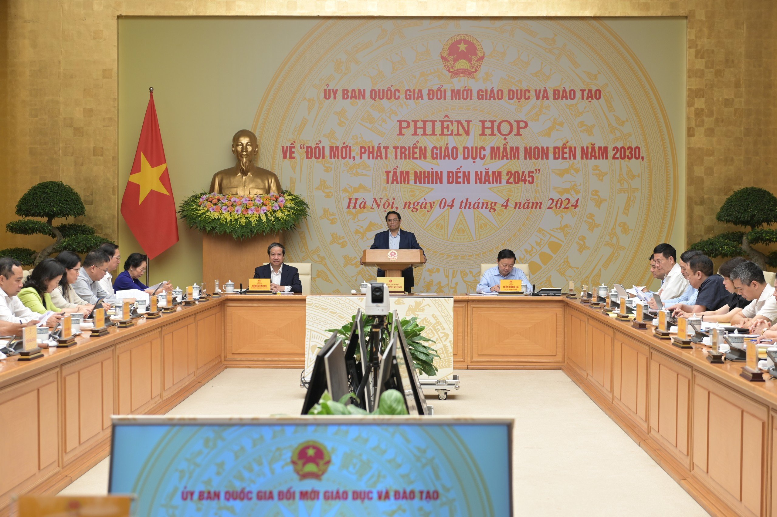 Nhắc tới Nghị quyết số 42 ngày 24/11/2023 của Ban Chấp hành Trung ương Đảng khóa XIII, trong đó có chỉ tiêu đến năm 2030 "Hoàn thành phổ cập GDMN cho trẻ mẫu giáo từ 3 đến 5 tuổi", Thủ tướng chỉ đạo, phải thế chế hoá, cụ thể hoá chủ trương của Đảng.