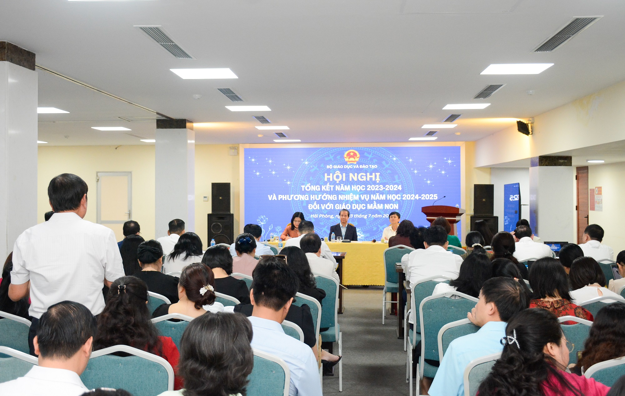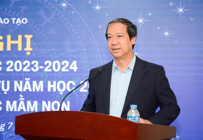 Báo cáo kết quả thực hiện nhiệm vụ năm học 2023-2024, Vụ trưởng Vụ Giáo dục Mầm non Nguyễn Bá Minh cho biết: Trong năm học, toàn ngành thực hiện đúng quy định, hiệu quả các chính sách phát triển giáo dục mầm non. Tăng cường huy động các nguồn lực của xã hội đầu tư cho phát triển giáo dục mầm non. Ưu tiên, lồng ghép nguồn lực từ các Chương trình, Đề án đầu tư xây dựng các hạng mục công trình, mua sắm bổ sung trang thiết bị, đồ chơi, đồ dùng dạy học, tài liệu học liệu, nâng chất lượng thực hiện Chương trình giáo dục mầm non.