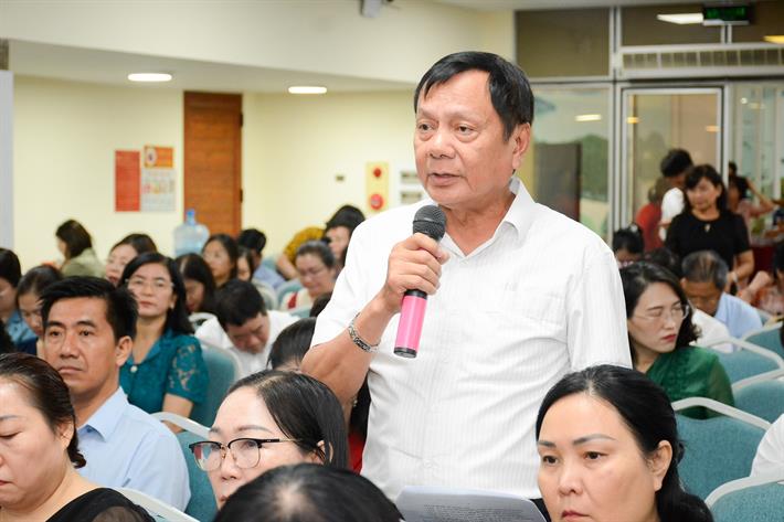 Bà Lê Thụy Mỵ Châu, Phó Giám đốc Sở GDĐT Thành phố Hồ Chí Minh trao đổi tại hội nghị