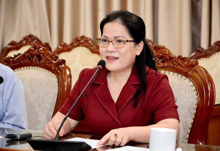 Thứ trưởng Nguyễn Thị Kim Chi trao đổi tại buổi làm việc