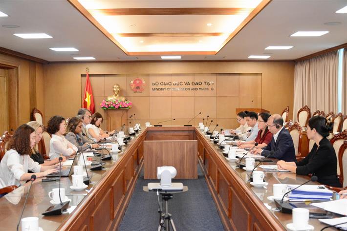 Tham dự buổi làm việc có bà Rianna Mohammed-Roberts, Trưởng Ban Phát triển Con người, Ngân hàng Thế giới tại Việt Nam, Campuchia và Lào; lãnh đạo Vụ Giáo dục mầm non, Cục Hợp tác quốc tế, Bộ GDĐT; các chuyên gia, tổ kỹ thuật của Ngân hàng thế giới.