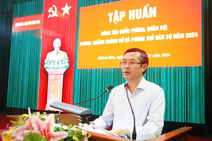 Để đạt chất lượng đợt tập huấn, Thứ trưởng đề nghị các thành viên tham gia tập huấn chấp hành nghiêm các quy định của ban tổ chức, lĩnh hội kiến thức đầy đủ nhằm nâng cao nhận thức trong lãnh đạo, chỉ đạo, triển khai tổ chức thực hiện công tác quốc phòng, quân sự; phòng, chống khủng bố; phòng thủ dân sự tại cơ sở và bảo đảm an toàn tuyệt đối trong tổ chức bắn đạn thật, trong quá trình tập huấn.