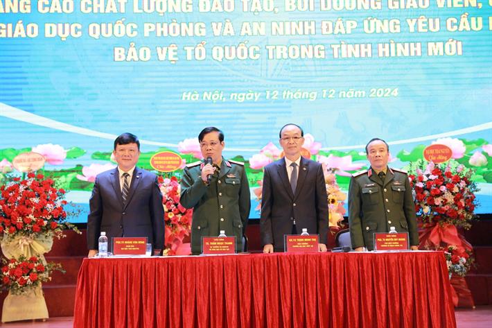 Từ các tham luận, ý kiến trao đổi tại hội thảo, Thứ trưởng đề nghị các cơ quan, đơn vị tham khảo những cách làm hay, kinh nghiệm tốt và giải pháp sáng tạo để vận dụng vào thực tiễn phù hợp với đặc điểm, nhiệm vụ của cơ quan, đơn vị; xây dựng đội ngũ giáo viên, giảng viên giáo dục quốc phòng và an ninh vững về chính trị, sáng về đạo đức, giỏi về chuyên môn, đáp ứng yêu cầu, nhiệm vụ giáo dục, đào tạo trong tình hình mới.