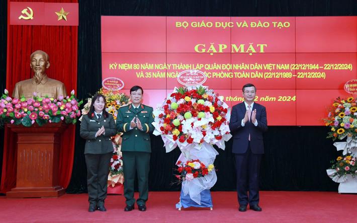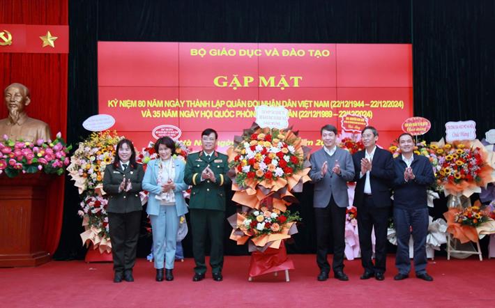 Sáng 19/12, Bộ Giáo dục và Đào tạo (GDĐT) tổ chức gặp mặt nhân kỷ niệm 80 năm Ngày thành lập Quân đội nhân dân Việt Nam (22/12/1944 - 22/12/2024) và 35 năm Ngày hội Quốc phòng toàn dân (22/12/1989 - 22/122024). Thứ trưởng Nguyễn Văn Phúc dự buổi gặp mặt.