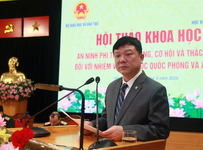 Phát biểu tại Hội thảo, Thiếu tướng, PGS.TS Nguyễn Huy Hoàng, Phó Giám đốc Học viện Chính trị (Bộ Quốc phòng),  nhấn mạnh: toàn cầu hóa, Cách mạng công nghiệp 4.0 cùng biến động chính trị - kinh tế - xã hội đã làm nảy sinh nhiều thách thức an ninh phi truyền thống, từ biến đổi khí hậu, dịch bệnh, di cư quốc tế đến an ninh mạng, khủng bố, tội phạm công nghệ cao… gây tác động sâu rộng tới ổn định và phát triển của các quốc gia.