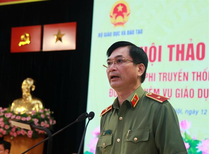 Thiếu tướng Trần Ngọc Thanh cho biết: Bộ Giáo dục và Đào tạo phối hợp cùng Học viện An ninh Nhân dân tổ chức Hội thảo khoa học lần này nhằm làm sáng tỏ vấn đề lý luận, thực tiễn, rút ra bài học kinh nghiệm và đề xuất giải pháp phù hợp. “Mỗi thầy cô, mỗi học sinh, sinh viên hãy là chiến sĩ tiên phong trong sự nghiệp xây dựng và bảo vệ Tổ quốc Việt Nam xã hội chủ nghĩa”, ông Thanh nhấn mạnh.