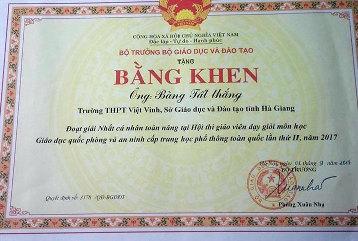 Đáng tự hào nhất là trong Hội thi Giáo viên giỏi toàn quốc vừa diễn ra tại thành phố Đà Nẵng tháng 8/ 2017, thầy đã đem về những vinh quang cho đoàn Hà Giang với các giải thưởng: