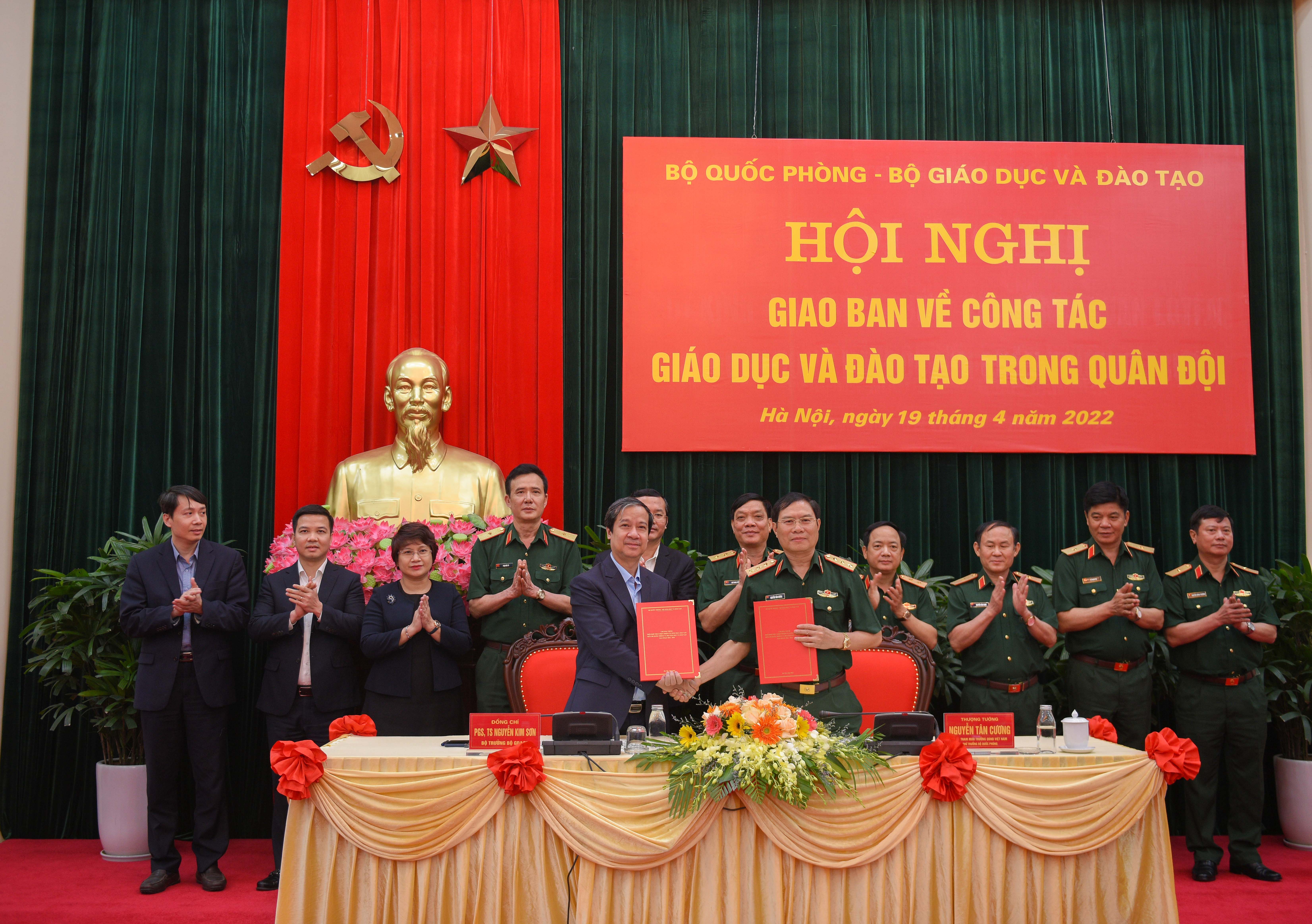 Chiều 19/4, Bộ trưởng Bộ Giáo dục và Đào tạo (GDĐT) Nguyễn Kim Sơn và Thượng tướng Nguyễn Tân Cương, Tổng Tham mưu trưởng Quân đội Nhân dân Việt Nam, Thứ trưởng Bộ Quốc phòng chủ trì Hội nghị Giao ban về công tác giáo dục và đào tạo trong quân đội năm 2021. Tại Hội nghị, Bộ GDĐT và Bộ Quốc phòng đã ký kết chương trình phối hợp thực hiện nhiệm vụ giáo dục, đào tạo giai đoạn 2022-2025.