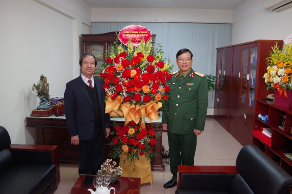 Bộ trưởng Nguyễn Kim Sơn tặng hoa chúc mừng Vụ Giáo dục Quốc phòng và An ninh