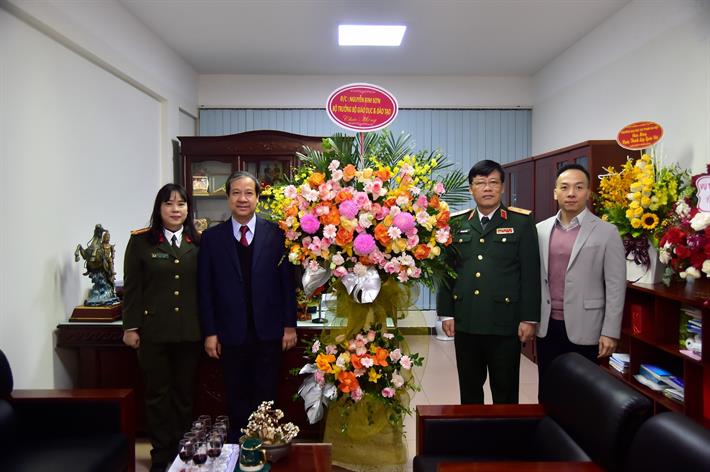 Bộ trưởng Nguyễn Kim Sơn tặng hoa chúc mừng Vụ Giáo dục Quốc phòng và An ninh
