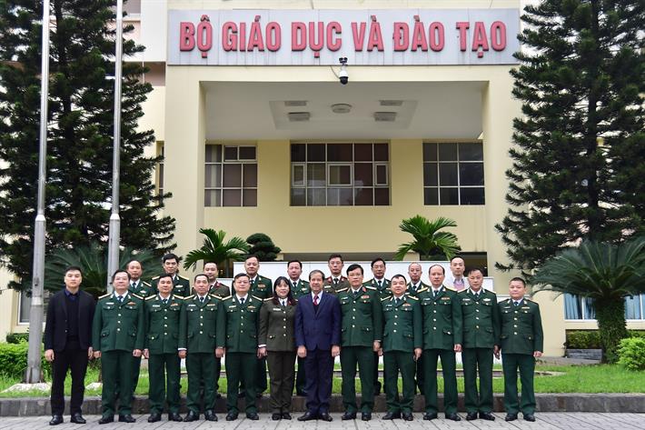Bộ trưởng Nguyễn Kim Sơn cùng các cán bộ Vụ Giáo dục Quốc phòng và An ninh