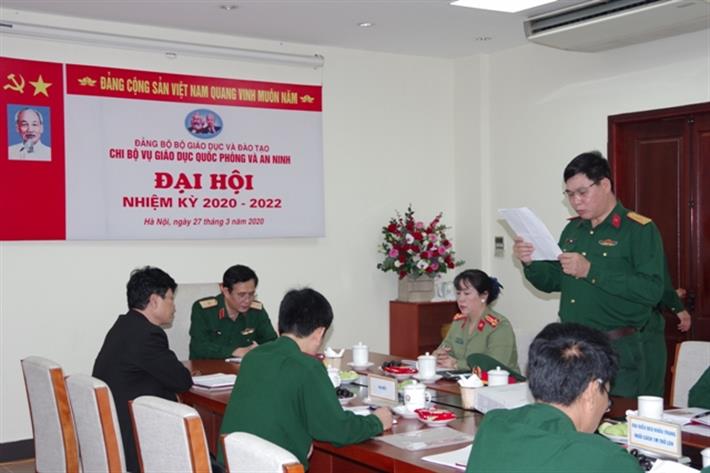 Thực hiện Chỉ thị 35-CT/TW ngày 30/5/2019 của Bộ Chính trị về đại hội đảng bộ các cấp tiến tới Đại hội Đại biểu toàn quốc lần thứ XIII của Đảng; Kế hoạch số 1251-KH/BGDĐT của Đảng ủy Bộ GDĐT về Đại hội Đảng bộ, Chi bộ nhiệm kỳ 2020-2022, sáng 27/3, Chi bộ Vụ Giáo dục Quốc phòng và An ninh (Bộ GDĐT) tổ chức Đại hội chi bộ nhiệm kỳ 2020-2022.
