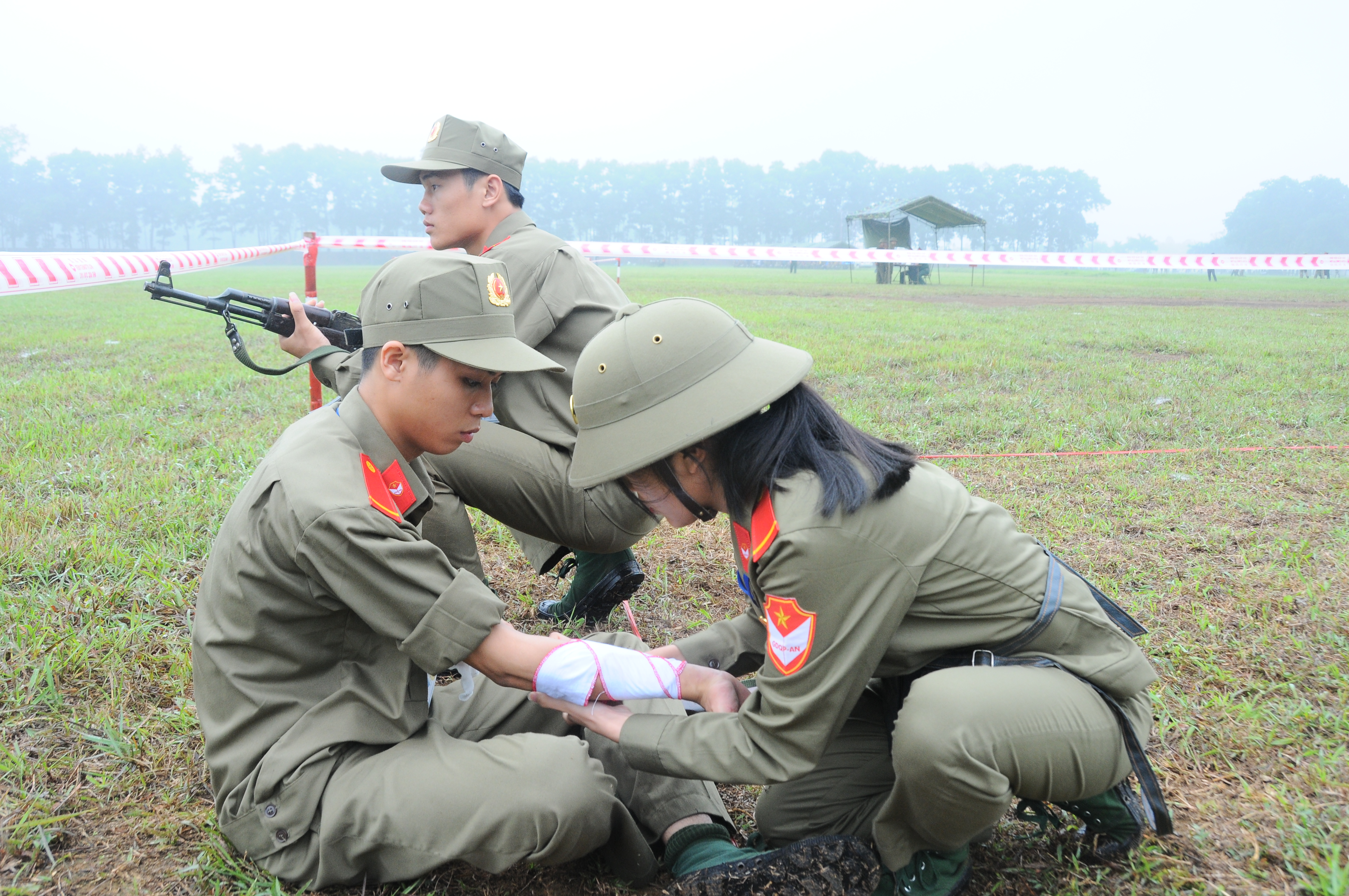 Nội dung thi băng bó cứu thương tại Hội Thao hoc sinh giỏi toàn quốc lần thứ 2 năm 2017.