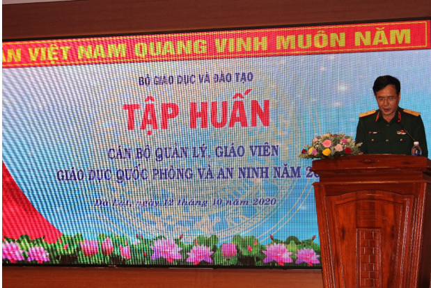 Phát biểu tại lớp tập huấn, đồng chí Thiếu tướng Phạm Đức Tú- Vụ trưởng Vụ Giao dục Quốc phòng và An ninh (Bộ GD&ĐT) nhấn mạnh: ‘’Trong bối cảnh tình hình thế giới, khu vưc đang có nhiều diễn biến phúc tạp,khó lường ,cạnh tranh chiến lược giữa các nươc lớn ngày càng gay gắt, tình hình Biển Đông chứa đựng nhiều tiềm ẩn nguy cơ ảnh hưởng tới hòa bình ,an ninh chích trị, trật tự ,an toàn xã hội, các thế lực thù đich đang từng ngày,từng giờ tiến hành “chiến lược diễn biến hòa bình”,công kích nhằm xóa bỏ vị trí lãnh đạo của Đảng nhằm phi chính trị hóa Quân đội và lưc lượng vũ trang”,xóa bỏ CNXH ở nước ta,trong đó học sinh ,sinh viên là đối tượng quan trọng mà kẻ địch hướng tới-do đó,công tác tập huấn ,bồi dưỡng cho các đồng chí cán bộ ,giảng viên càng trở nên cấp bách hơn bao giờ hêt”.