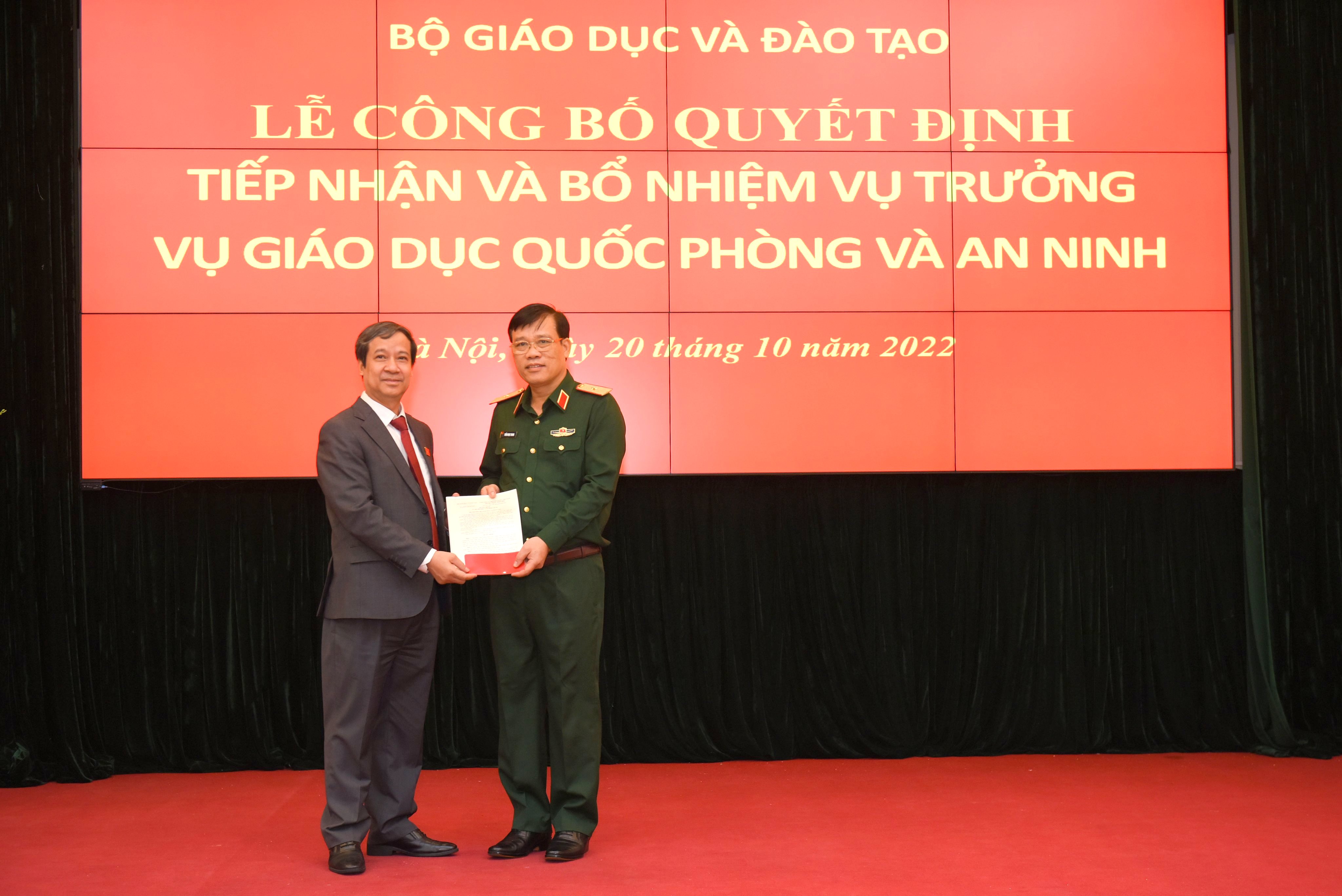 Trao quyết định bổ nhiệm Vụ trưởng Vụ Giáo dục Quốc phòng và An ninh
