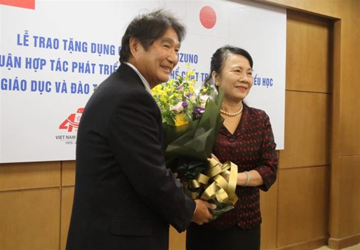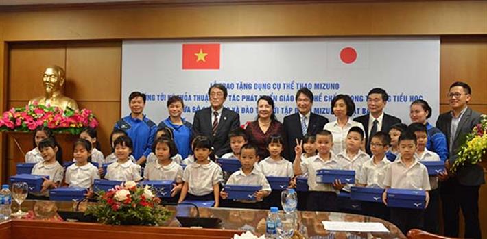 Tập đoàn Mizuno đã trao tặng bộ dụng cụ thể thao cho Bộ GD&ĐT Việt Nam