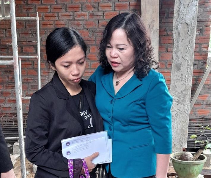Thứ trưởng Ngô Thị Minh trò chuyện, chia sẻ và động viên cô giáo Ngô Thị Thanh Nhàn
