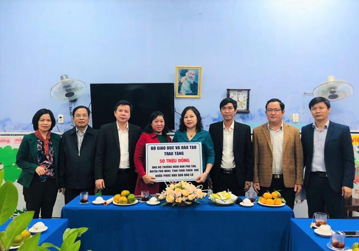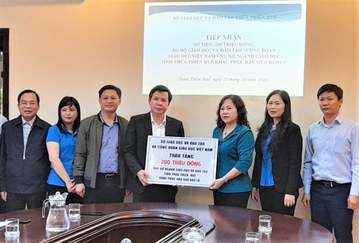 Dịp này, Thứ trưởng Ngô Thị Minh, thay mặt cho Bộ GDĐT, Công đoàn Giáo dục Việt Nam trao tặng 200 triệu đồng cho ngành Giáo dục Thừa Thiên Huế và 50 triệu đồng cho Công đoàn Đại học Huế, góp phần khắc phục thiệt hại trong toàn ngành.