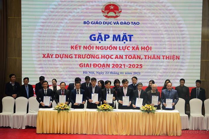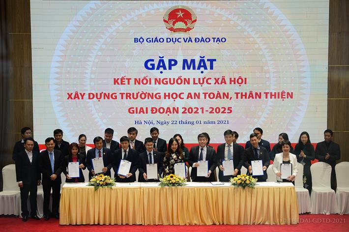 Các đơn vị, doanh nghiệp ký kết thỏa thuận hợp tác với Bộ GDĐT nhằm kết nối nguồn lực xã hội xây dựng trường học an toàn, thân thiện