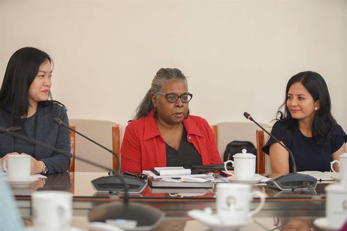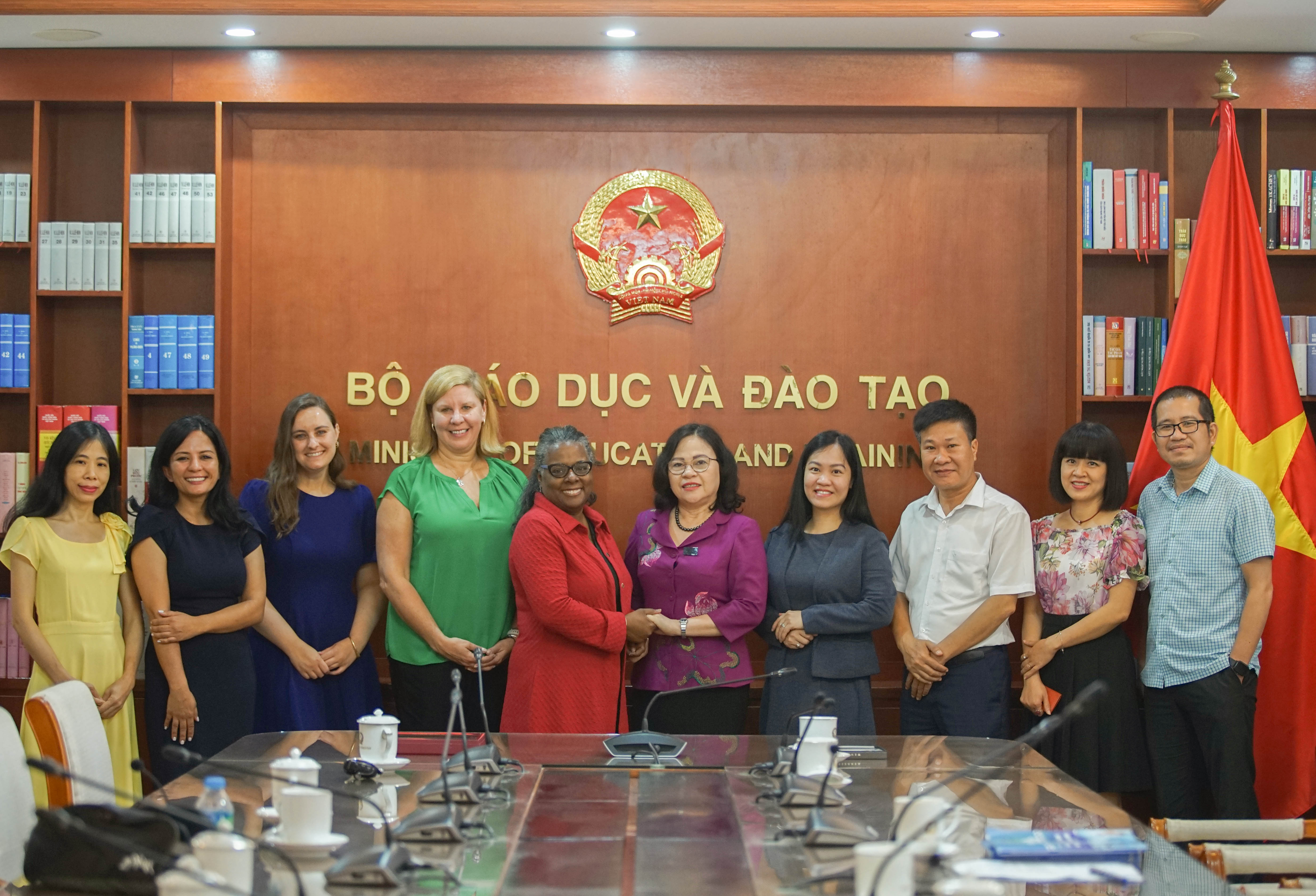 Thứ trưởng Ngô Thị Minh vui mừng đón tiếp bà Yolonda Chanterra Richardson tại trụ sở Bộ GDĐT
