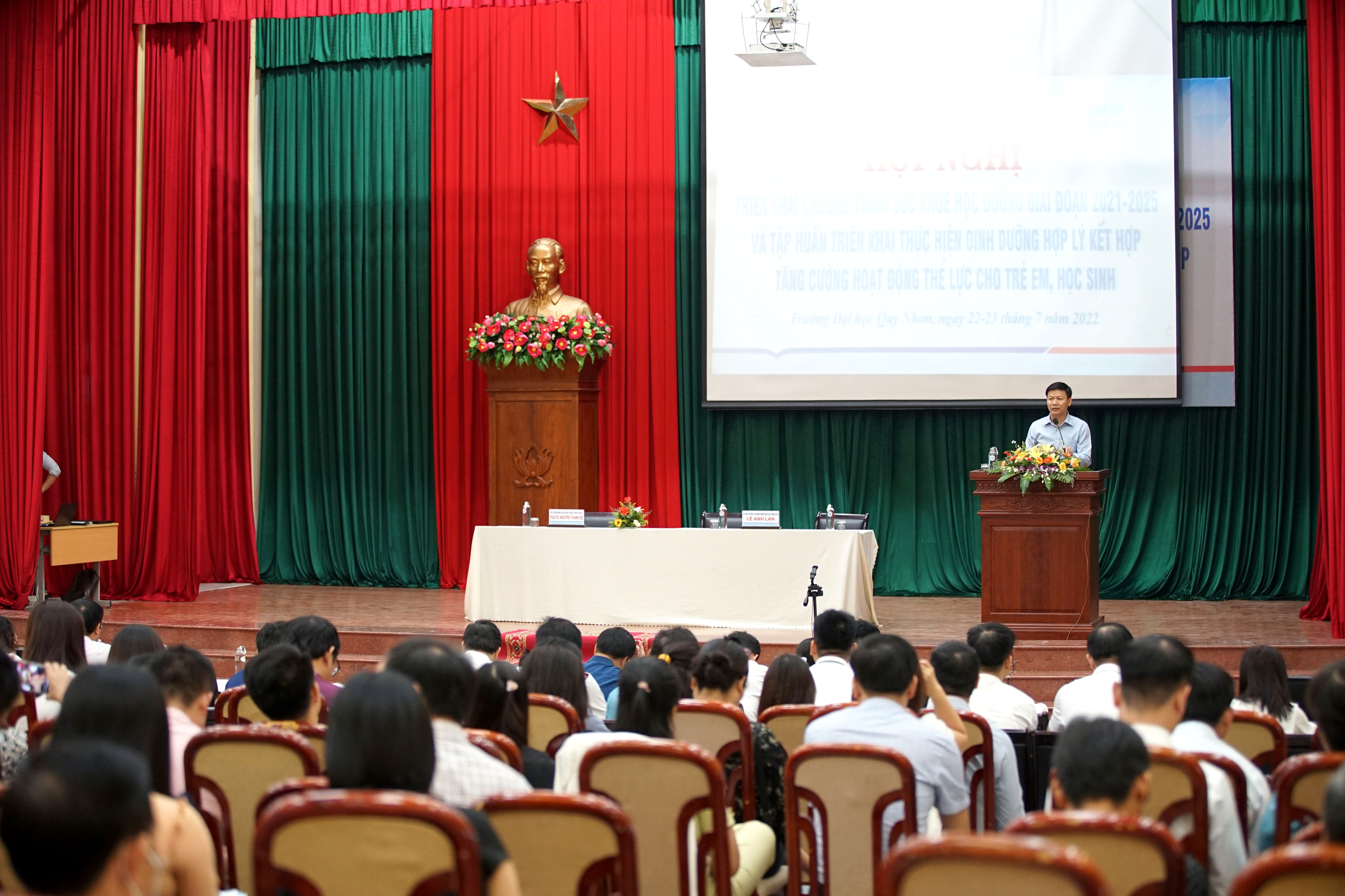 Tại buổi tập huấn, các đại biểu là đại diện các Sở GDĐT đã được tìm hiểu hai chuyên đề “Hướng dẫn xây dựng thực đơn bữa ăn học đường bảo đảm dinh dưỡng, khoa học và hợp lý” của BS. CK II. Đỗ Thị Ngọc Diệp Phó Chủ tịch Hội Dinh dưỡng Việt Nam và chuyên đề “Xây dựng các bài tập vận động thể lực để nâng cao sức khỏe, phòng, chống bệnh không lây nhiễm trong trường học” do PGS.TS Nguyễn Quang Vinh, hó hiệu trưởng Trường Đại học Sư phạm Thể dục Thể thao TP. Hồ Chí Minh trình bày.