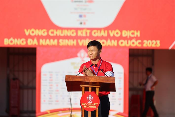 Phát biểu khai mạc, ông Nguyễn Thanh Đề, Vụ trưởng Vụ Giáo dục Thể chất - Bộ GDĐT, Trưởng ban tổ chức cho biết: “SV Cup 2023” sẽ góp phần thúc đẩy mạnh mẽ sự phát triển của bóng đá sinh viên Việt Nam, lan toả đam mê thể thao, xây dựng lối sống lành mạnh, truyền tải những giá trị nhân văn, cao thượng thông qua thể thao đến thế hệ trẻ và là căn cứ để tuyển chọn các vận động viên - sinh viên ưu tú, đại diện sinh viên Việt Nam tham dự các Đại hội thể thao sinh viên khu vực, châu lục và thế giới. SV Cup 2023 hướng tới mục tiêu trở thành giải đấu thường niên, quy mô và hấp dẫn dành cho sinh viên toàn quốc.