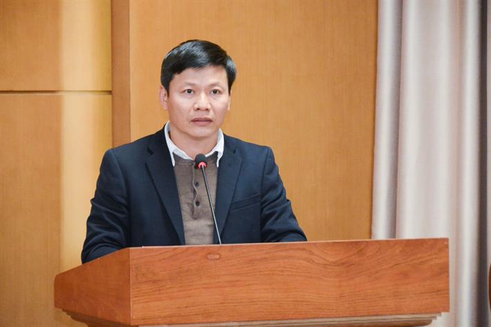 Vụ trưởng Vụ Giáo dục thể chất Nguyễn Thanh Đề báo cáo tại hội nghị