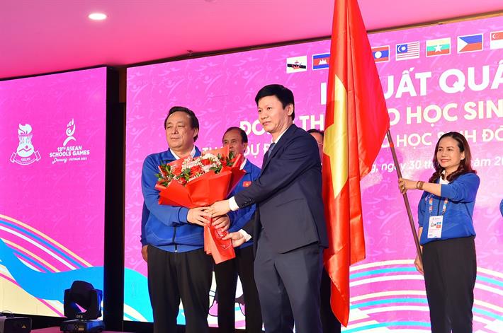 Đại diện Đoàn thể thao học sinh Việt Nam tại Lễ xuất quân