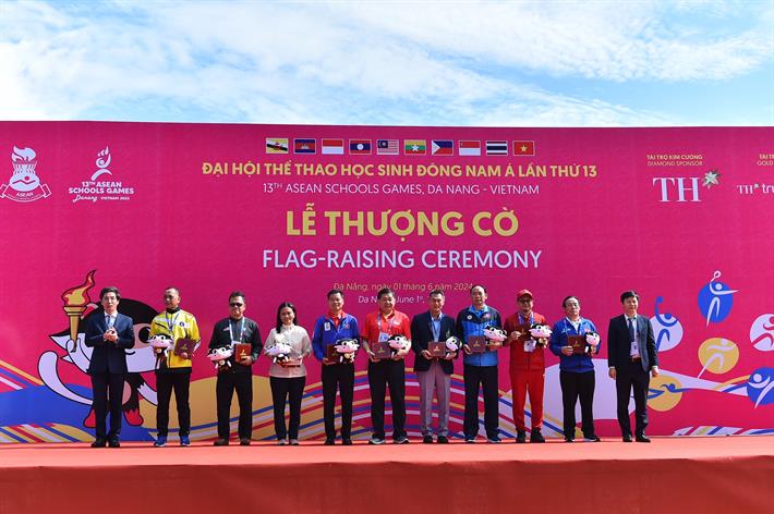 Tham dự buổi lễ có ông Nguyễn Thanh Đề, Vụ trưởng Vụ Giáo dục thể chất (Bộ Giáo dục và Đào tạo), Phó trưởng Ban Tổ chức ASG 13; ông Trần Chí Cường, Phó Chủ tịch UBND thành phố Đà Nẵng cùng đại diện các đoàn thể thao học sinh các nước ASEAN tham dự Đại hội.